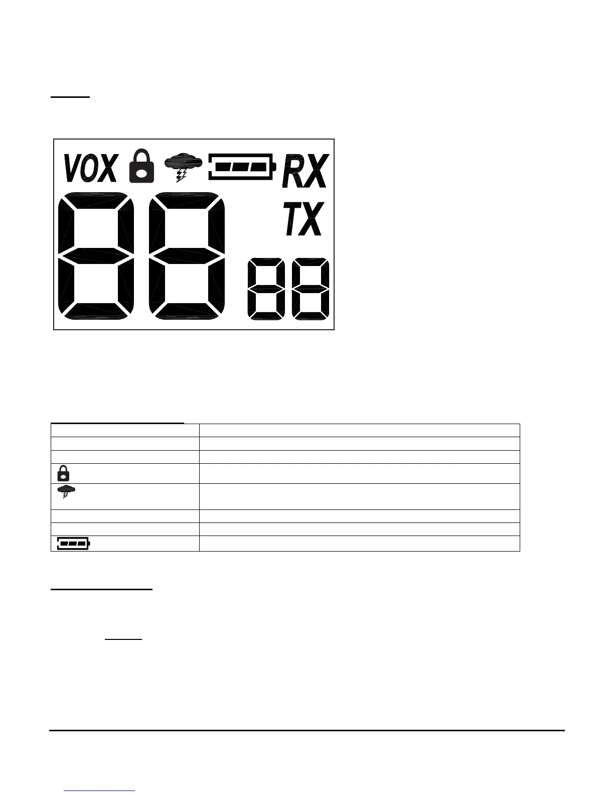 Indicates weather radio mode. Flashing if weather alert is