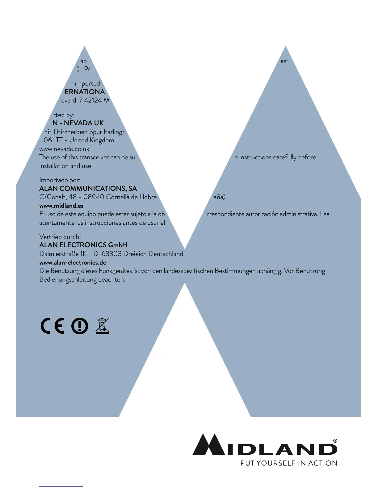 The use of this transceiver can be subject to national restrictions. Read the instructions carefully before