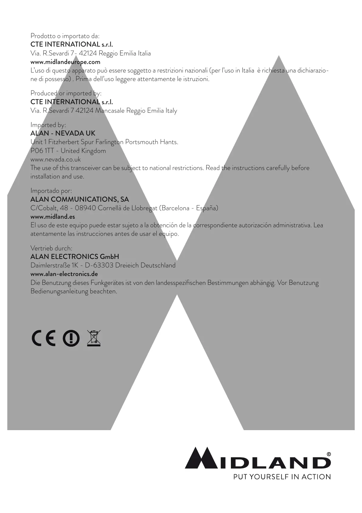 L’uso di questo apparato può essere soggetto a restrizioni nazionali (per l’uso in Italia è richiesta una dichiarazio-