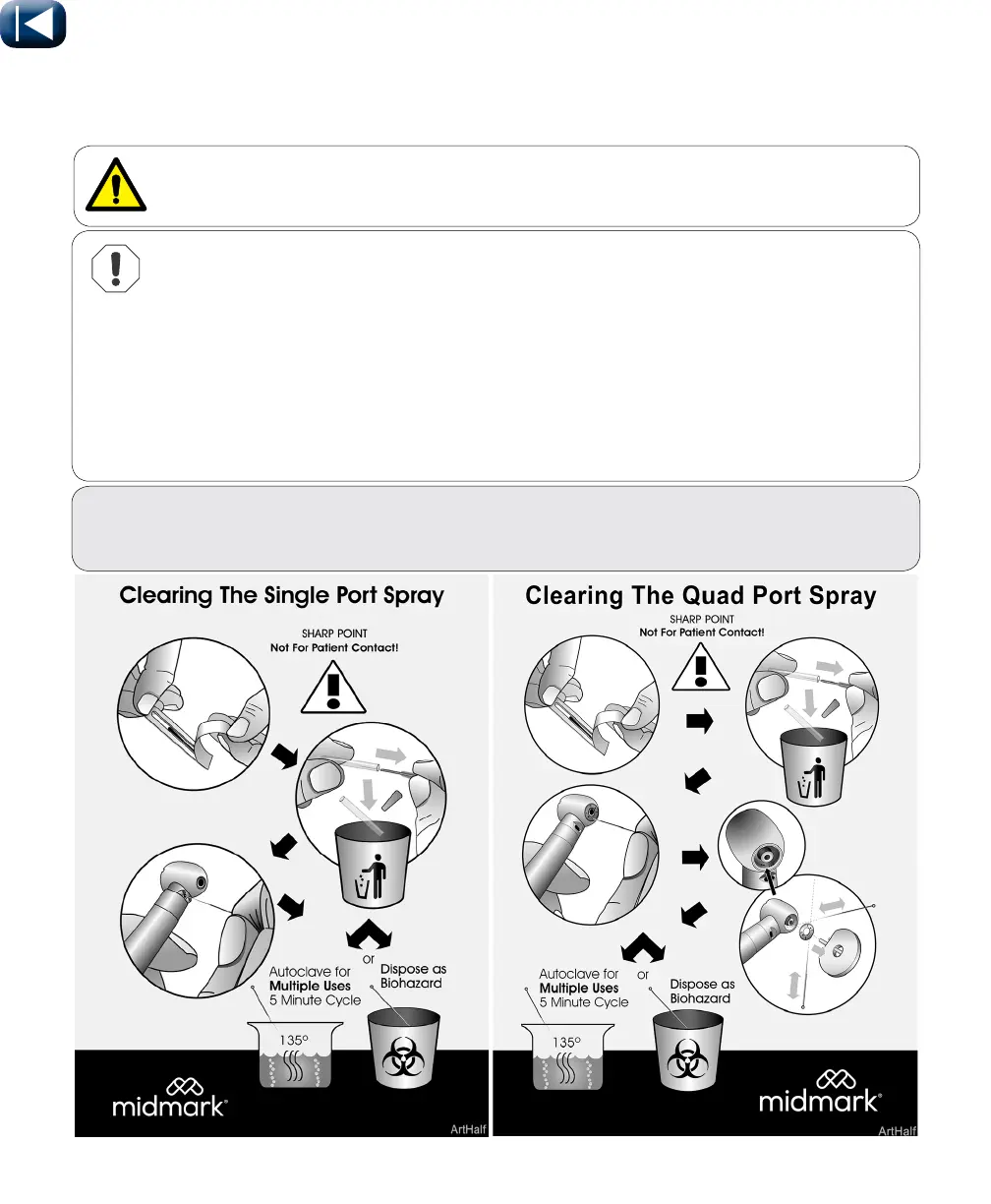 Toutes les pièces à main de Midmark doivent être stérilisées et lubrifiées après chaque patient. La