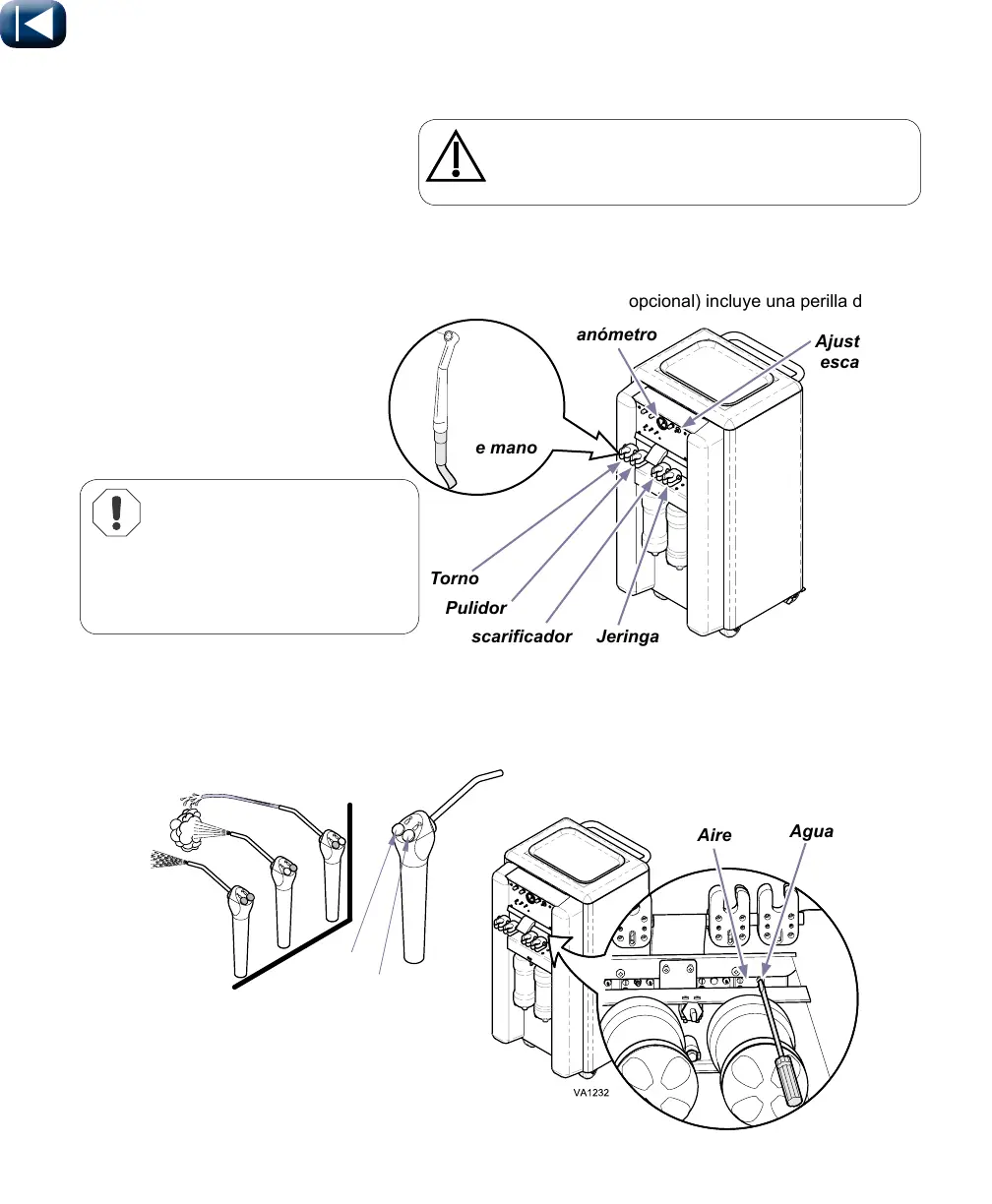 obtiene una nebulización de aire y agua Los ajustes de aire y agua están situados debajo del soporte de