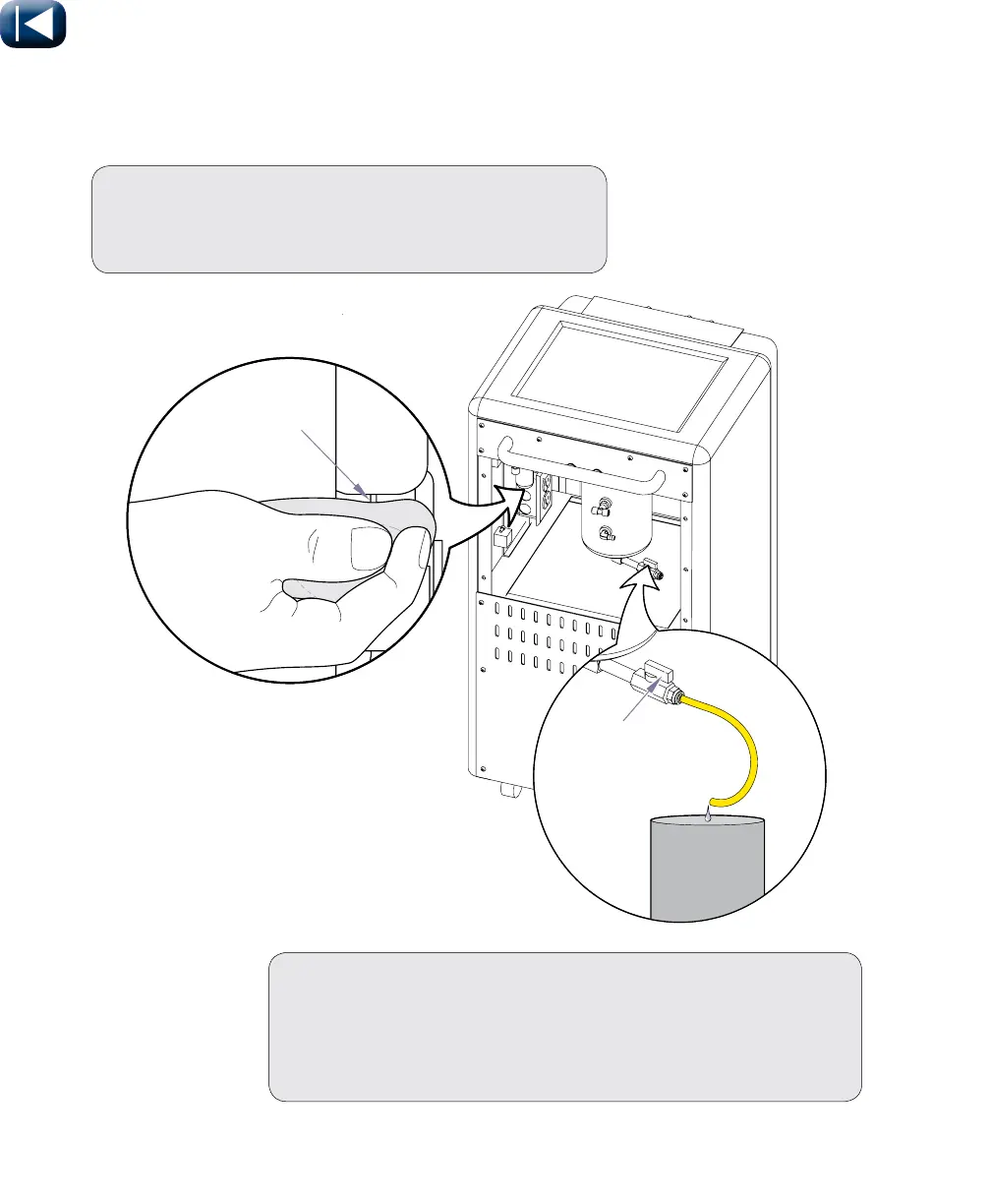 B) Placez l’extrémité du tuyau rouge au-dessus d’un récipient.