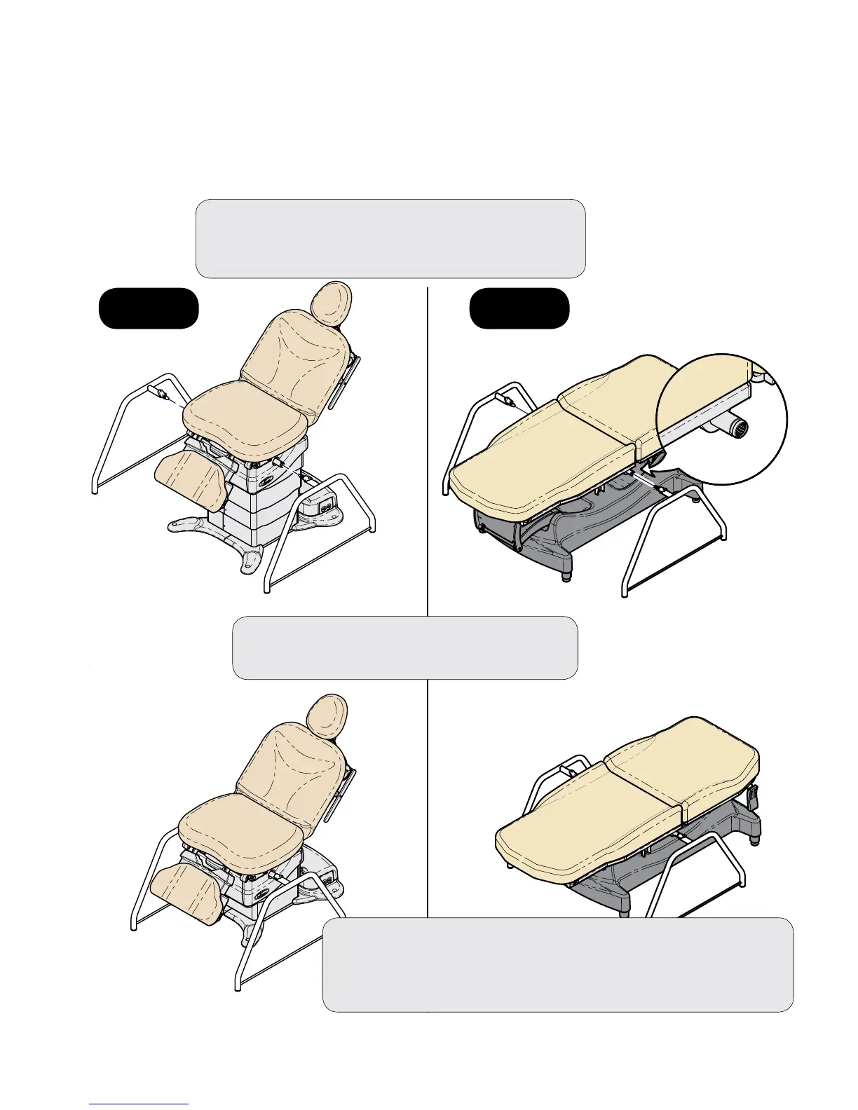 A) Press Chair Up on hand control to lower chair base to floor or dolly.