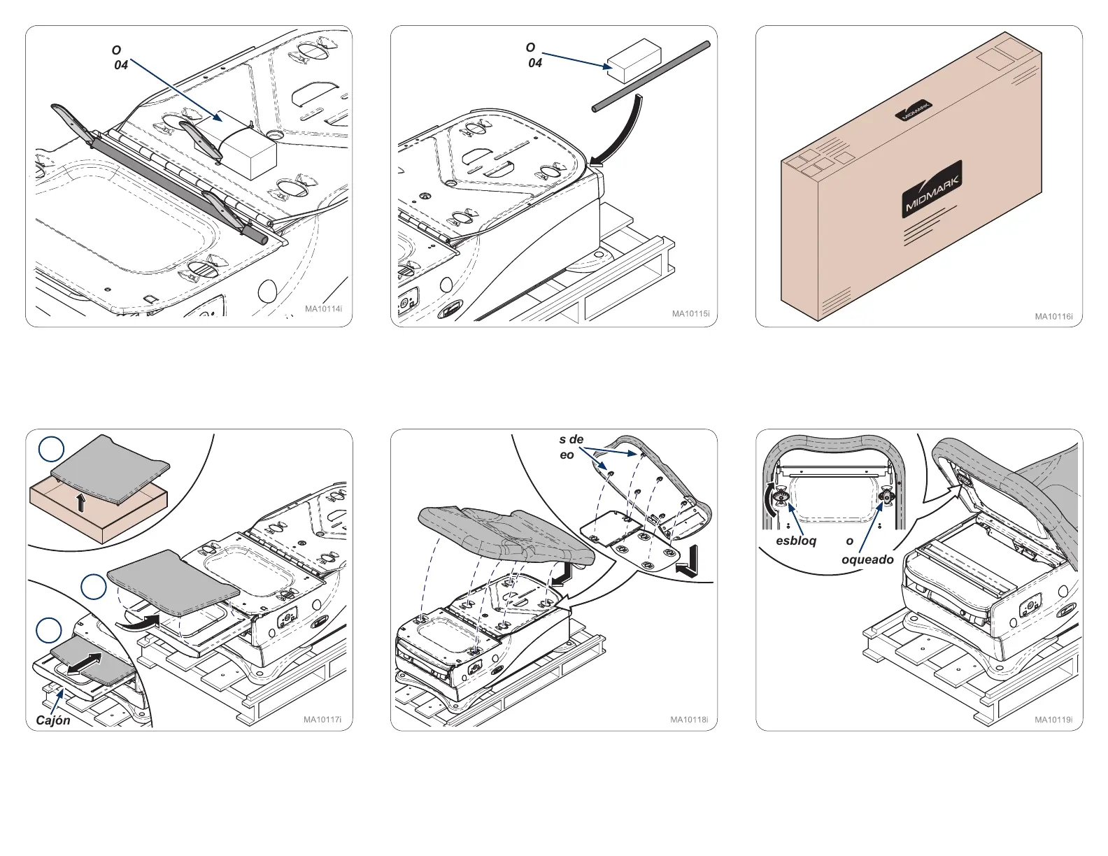 Saque el tapizado del reposapiés de la caja y colóquelo