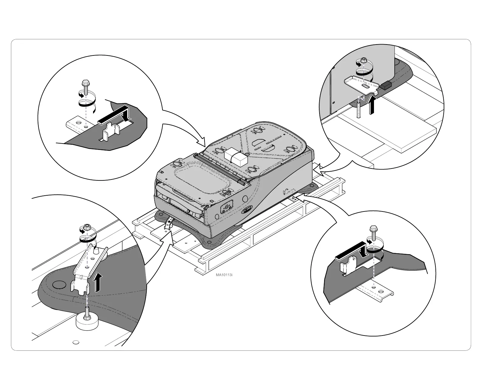 Remove brackets (4) from skid to release table.