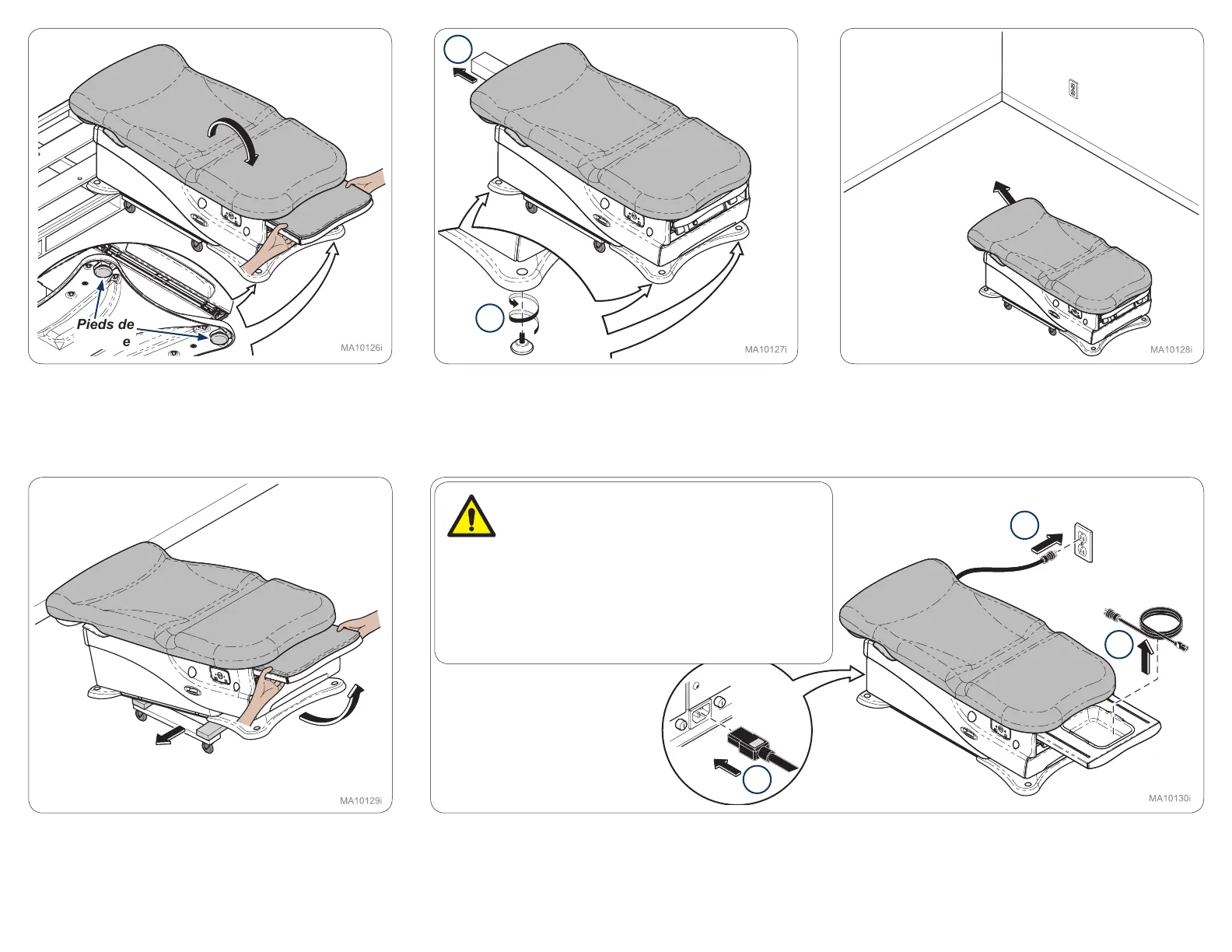 Abaisser la table sur le chariot. Regarder sous l’assise