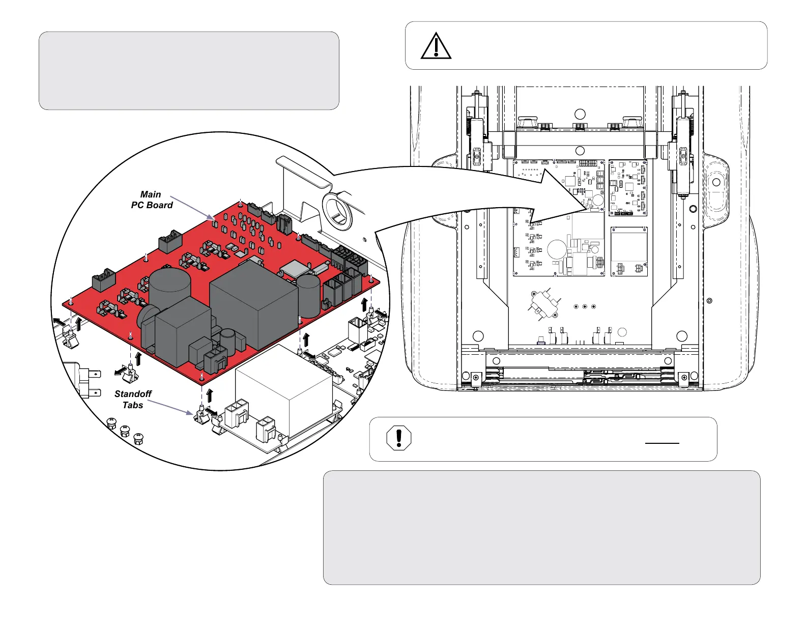 A) Position the Main PC board on the standoffs as shown and press down to secure.