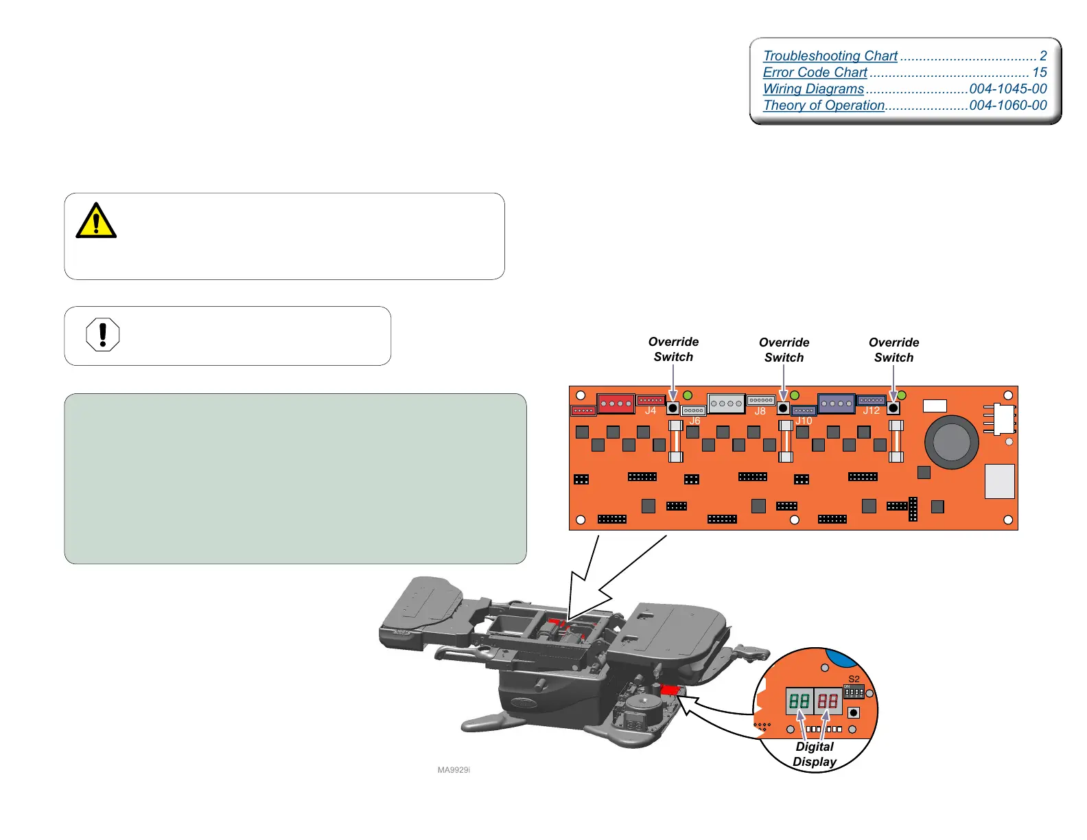 can be operated by pressing the Override Switch on the Motor Control Hub PC Board