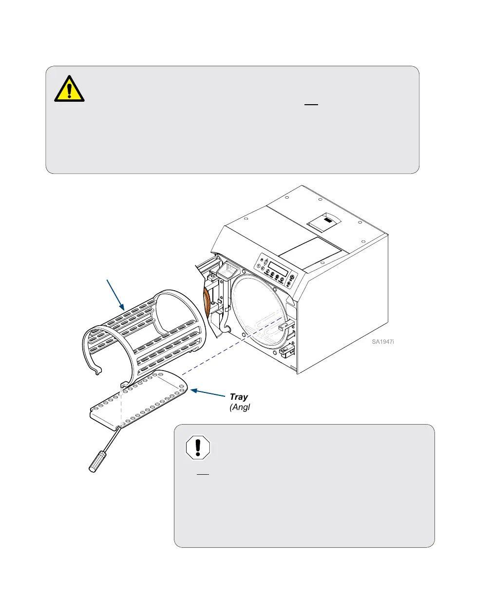 Handle metal tray rack carefully to avoid injury. Do not run sterilizer without