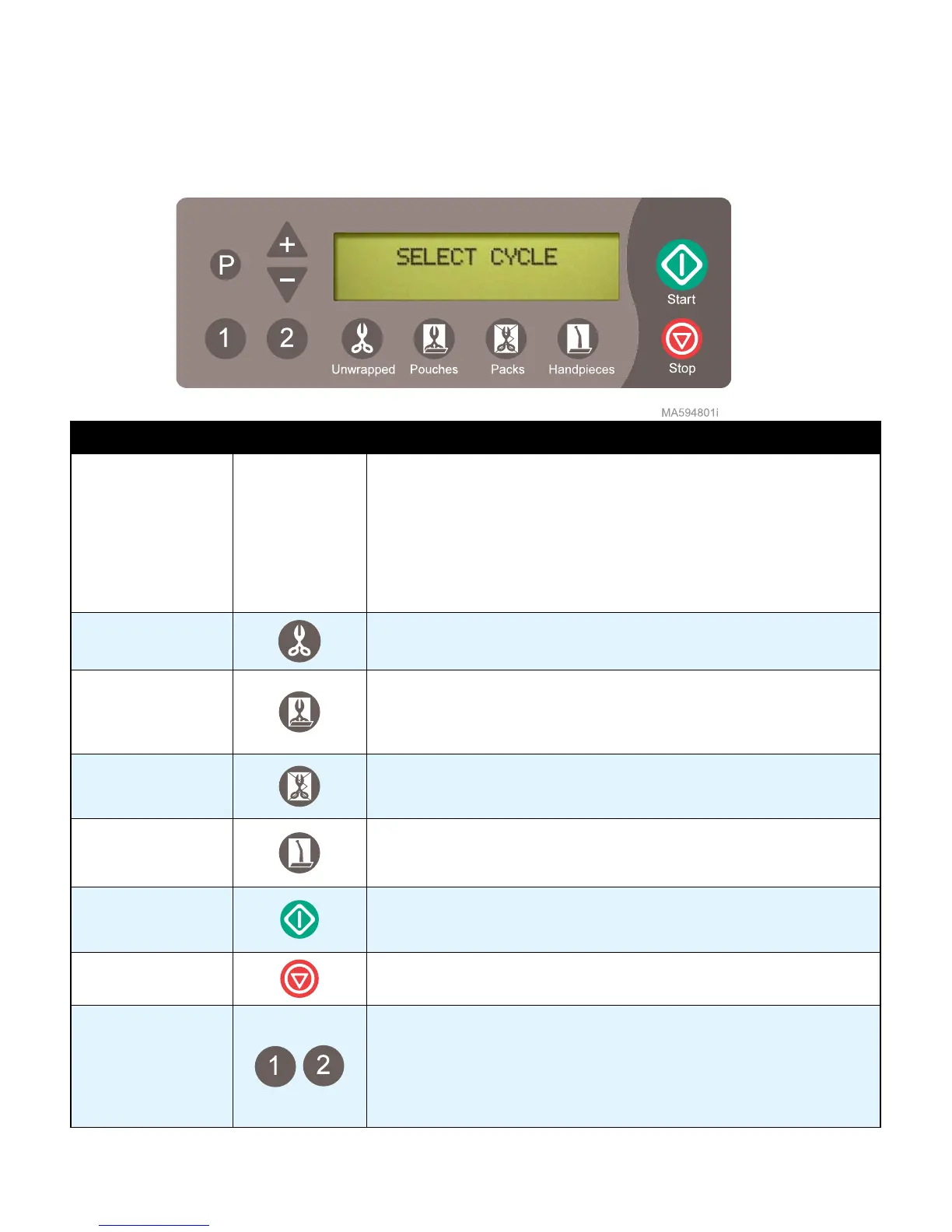 Les commandes et les indicateurs du stérilisateur sont illustrés sur cette page et la page suivante.