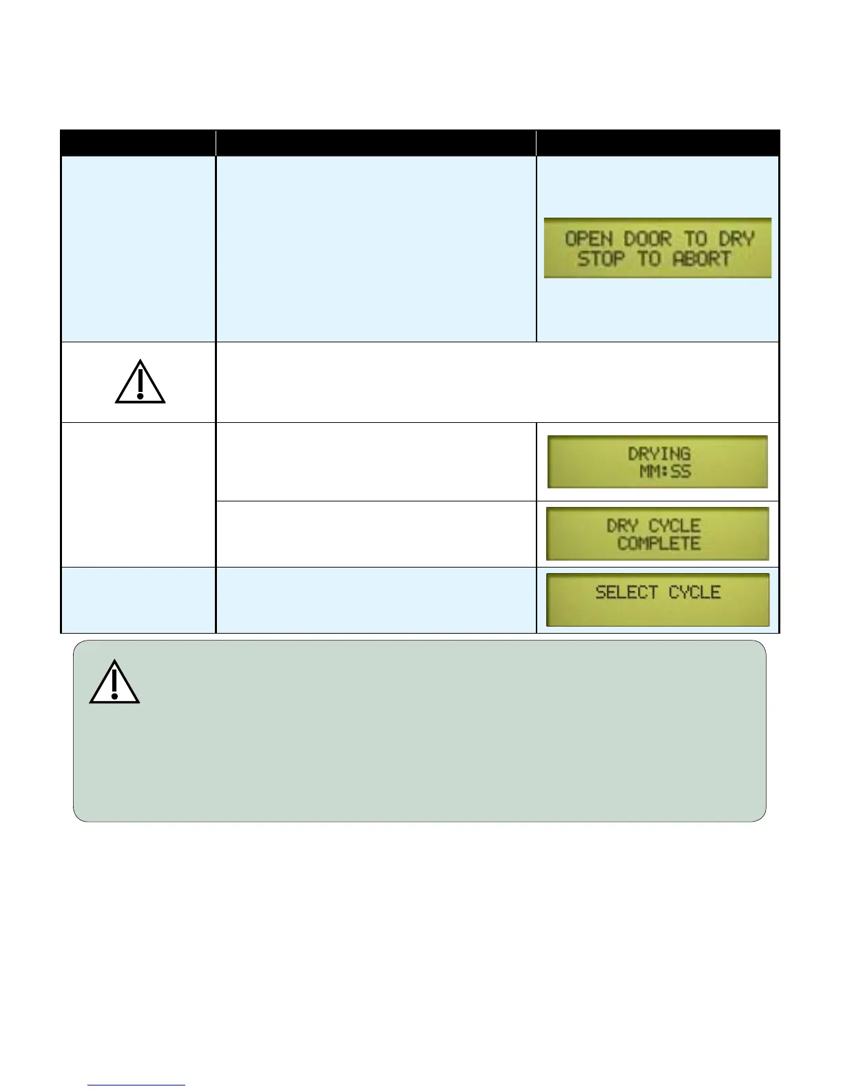 Les charges traitées peuvent encore être humides si le cycle de séchage a été