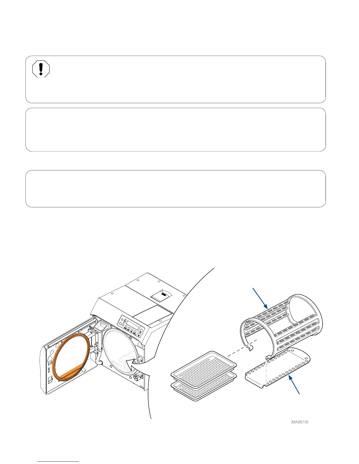 B) Retirez les plateaux, le support de plateaux et la plaque du stérilisateur.