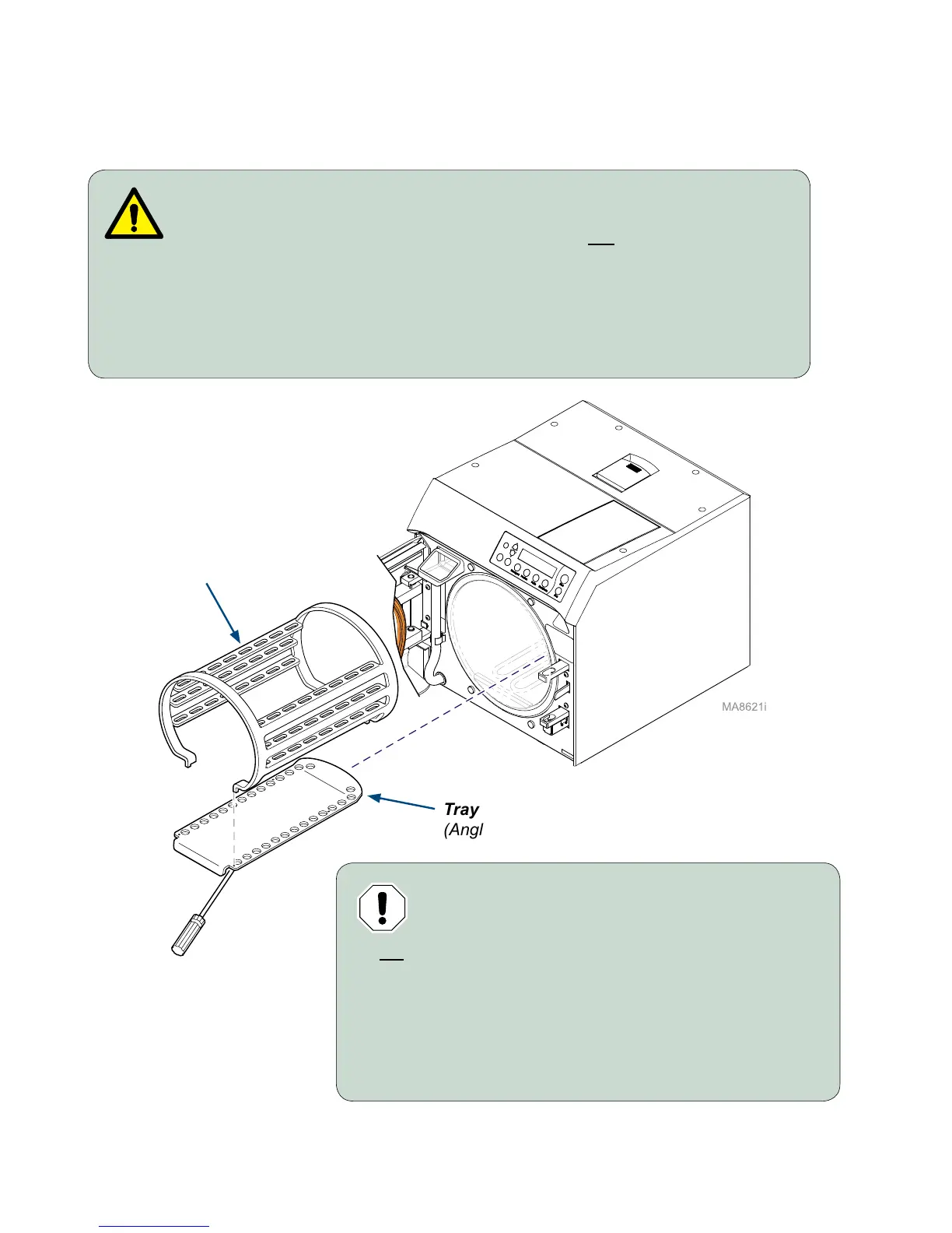Handle metal tray rack carefully to avoid injury. Do not run sterilizer without