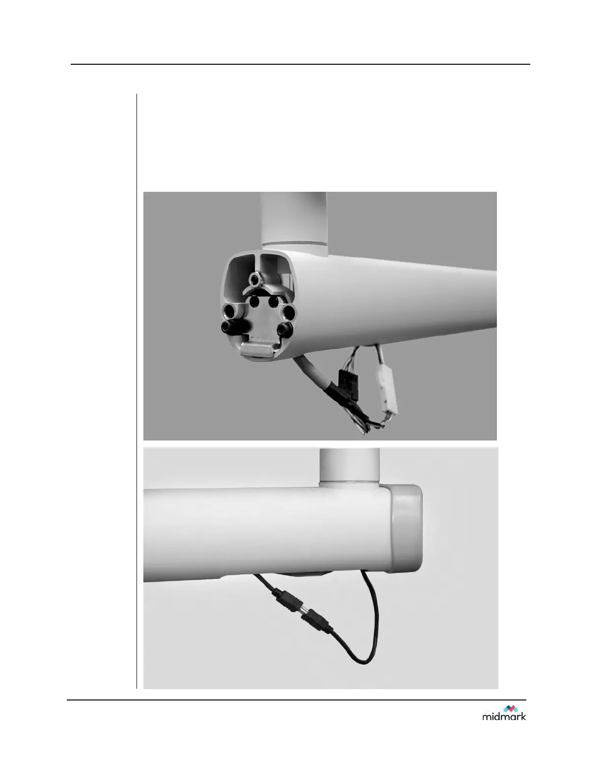 1. Connect the two Articulating Arm cables to the Horizontal Arm cables, as shown in