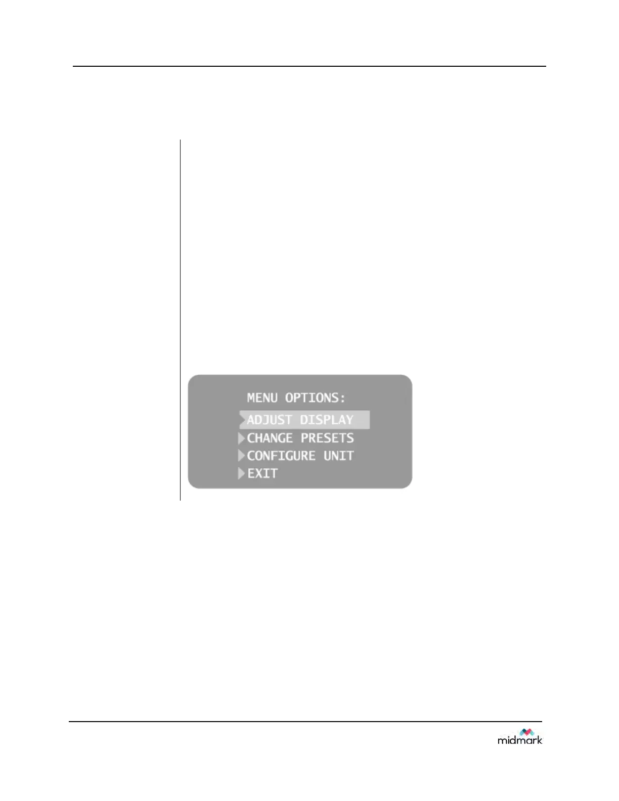 down arrows to highlight a menu option. Then use the right arrow button as