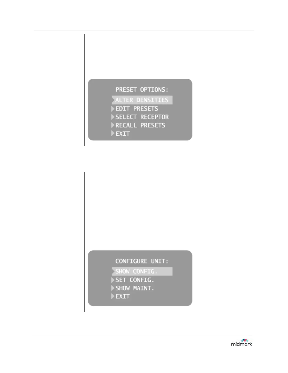 CONFIGURE UNIT. You will see the Configuration menu shown in Figure