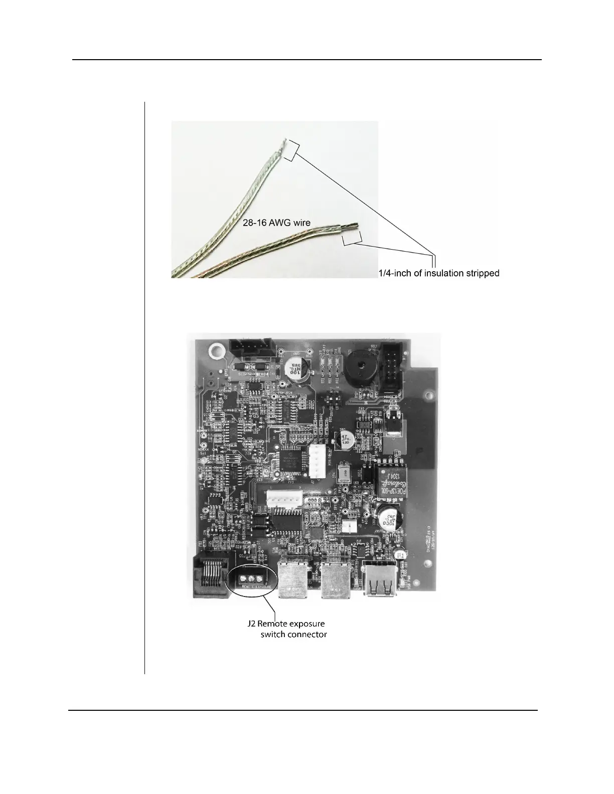 1. Strip ¼-inch of insulation from two 28-16 AWG wires.