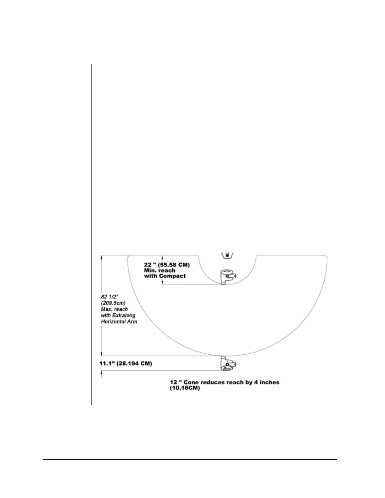 The reach of the system is measured from the tip of the Cone with the arm fully