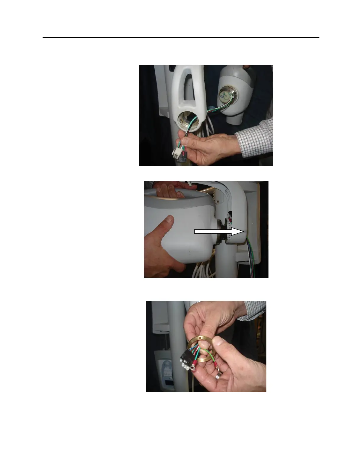 21. Feed the connectors and ground wire of the yoke cable through the first