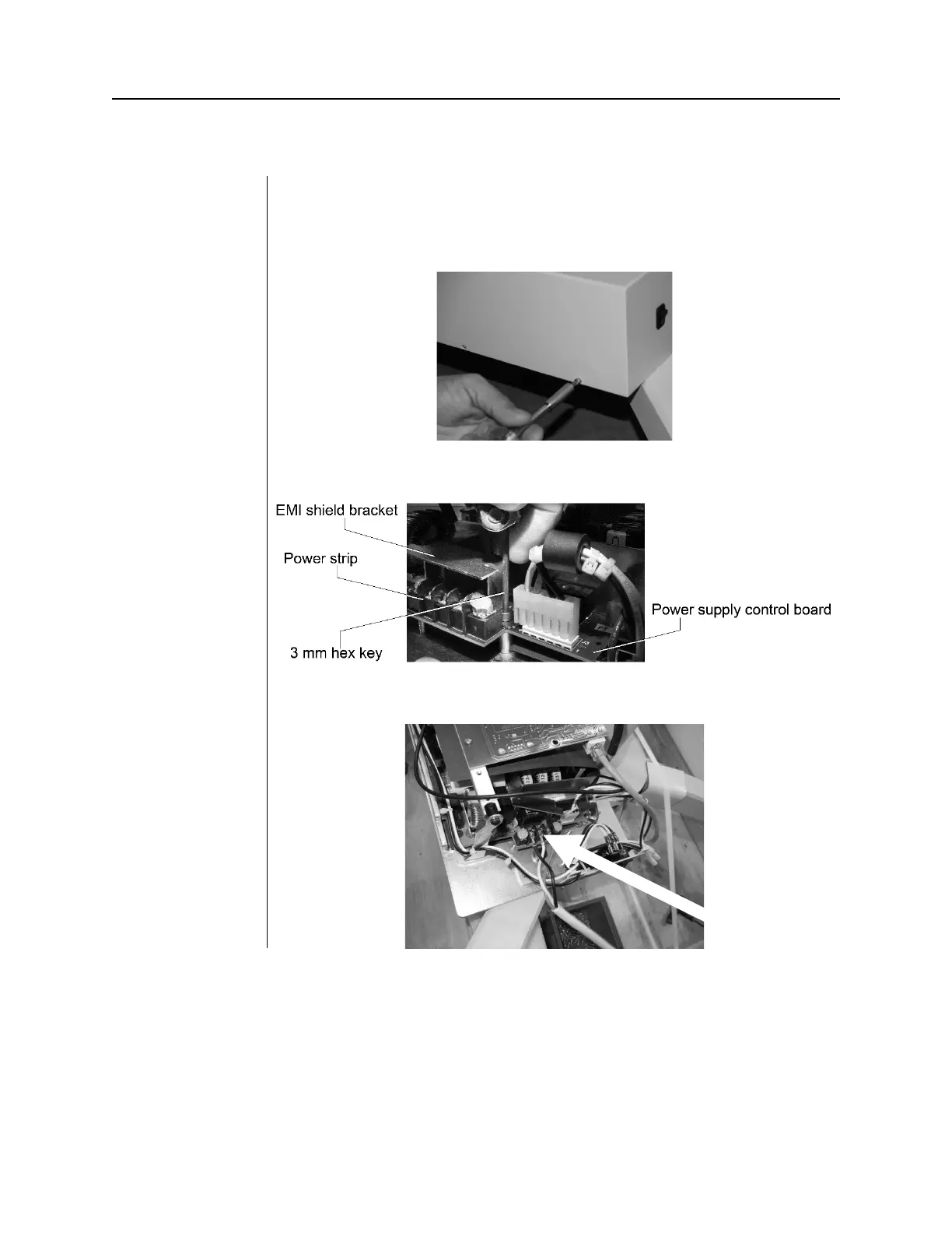 3. Loosen the three screws that secure the power cord (Part# E1-13028).