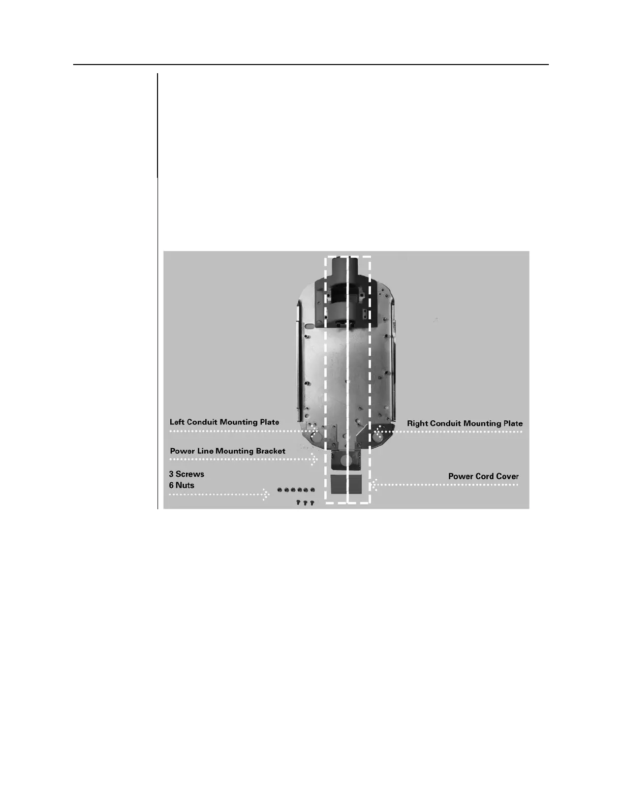 3. Place the assembled power line bracket and cord cover on the two bottom-most
