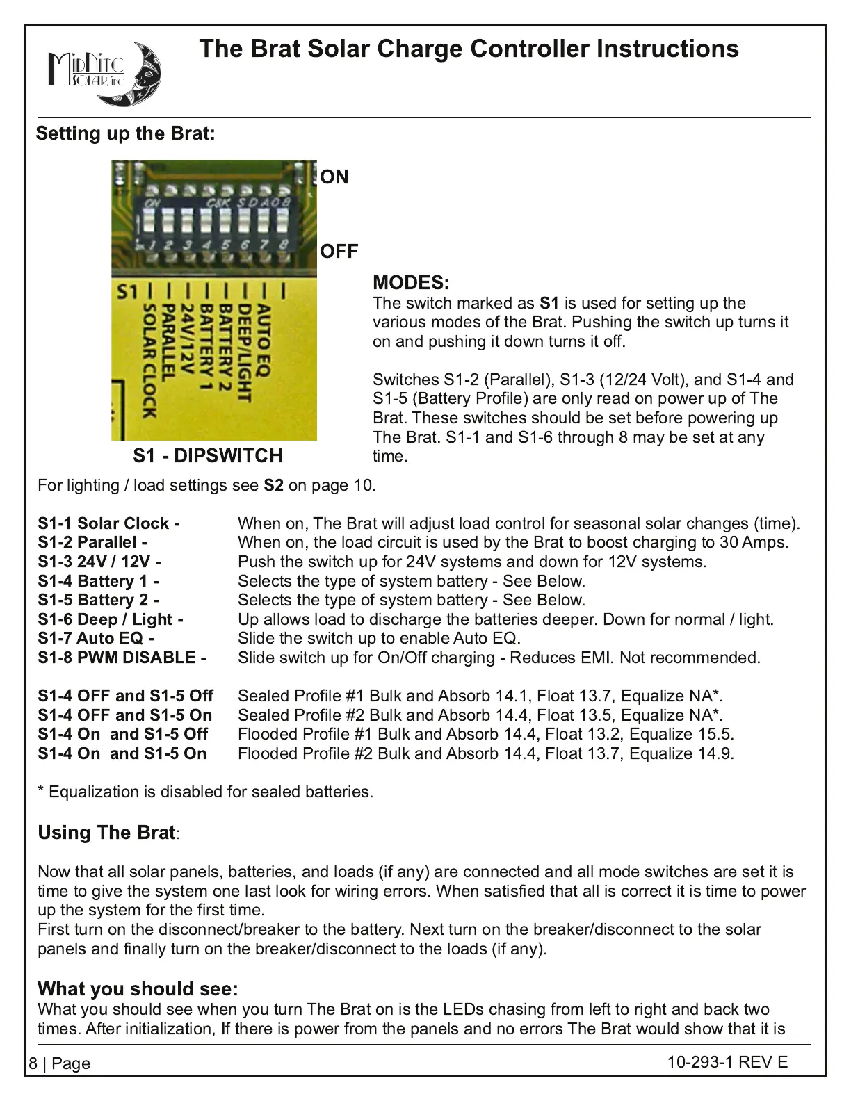 times. After initialization, If there is power from the panels and no errors The Brat would show that it is