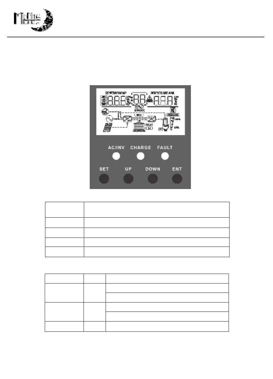 The operation and display panel is as shown below, including 1 LCD screen, 3 indicators and 4