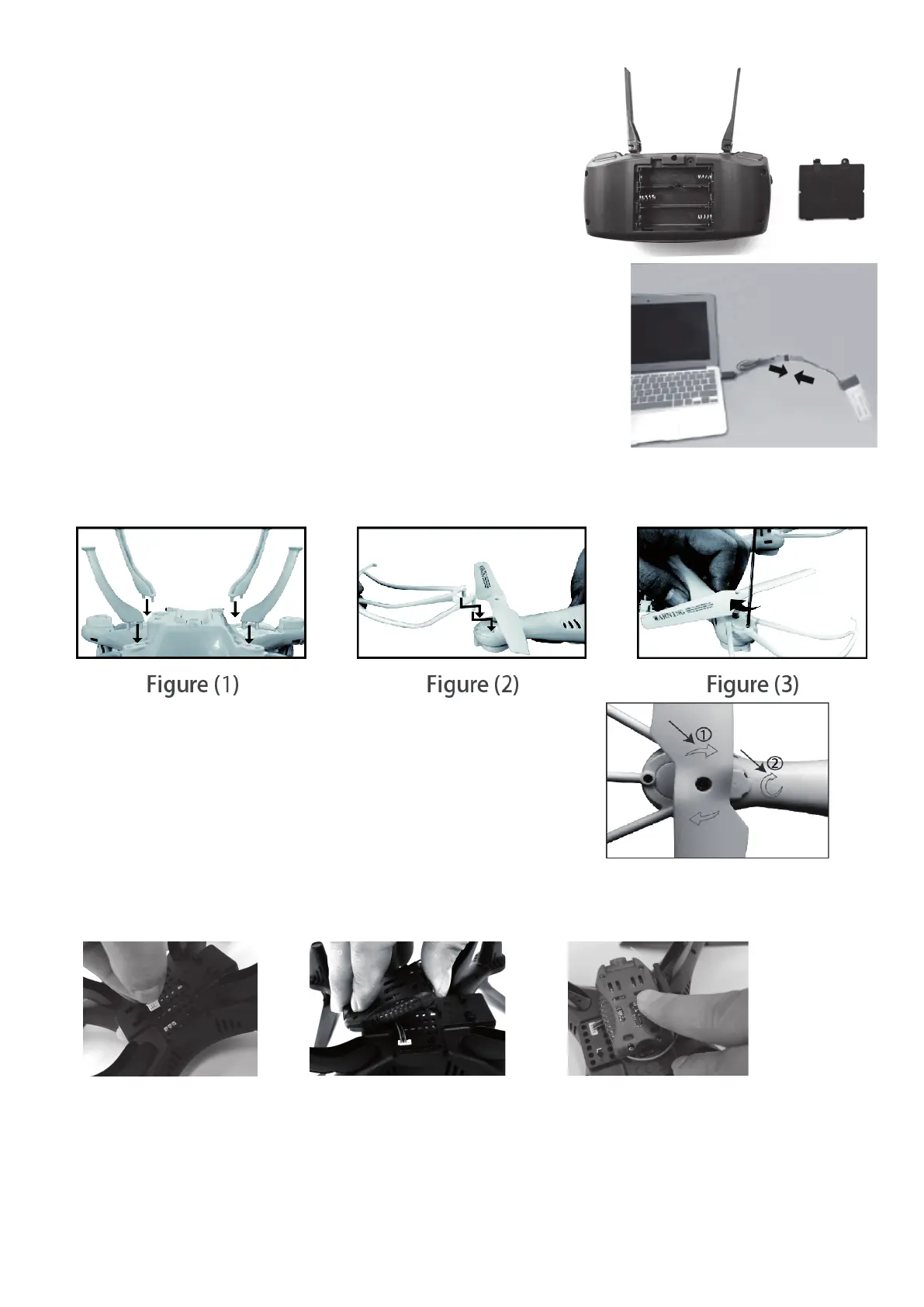 Si nécessaire, installez la caméra sous le drone comme expliqué sur les images ci-dessous.
