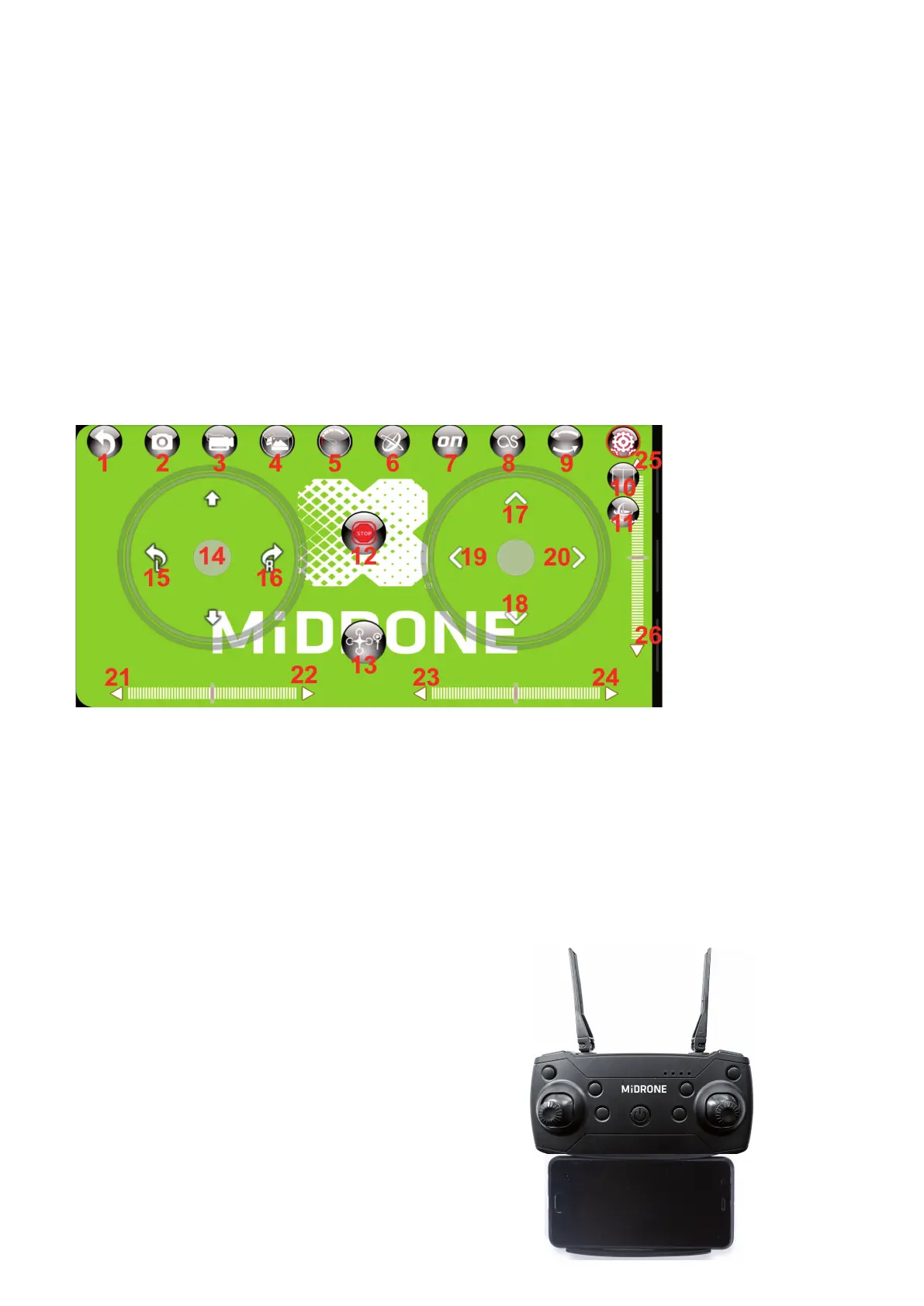 smartphone. The controls of the left joystick remains active for the management of the altitude and