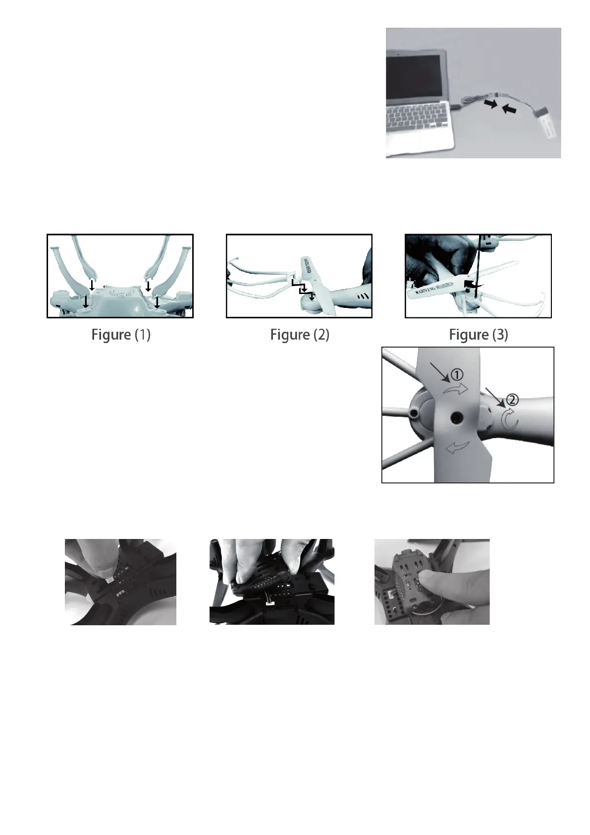 Si es necesario, instale la cámara debajo del dron como se explica en las imágenes a