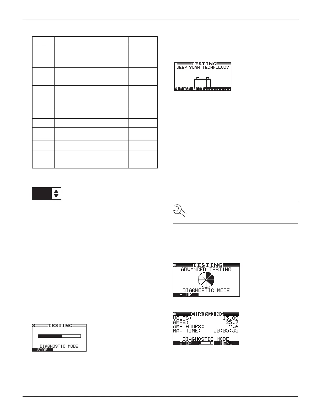 between the CHARGING and TESTING screens. The TESTING