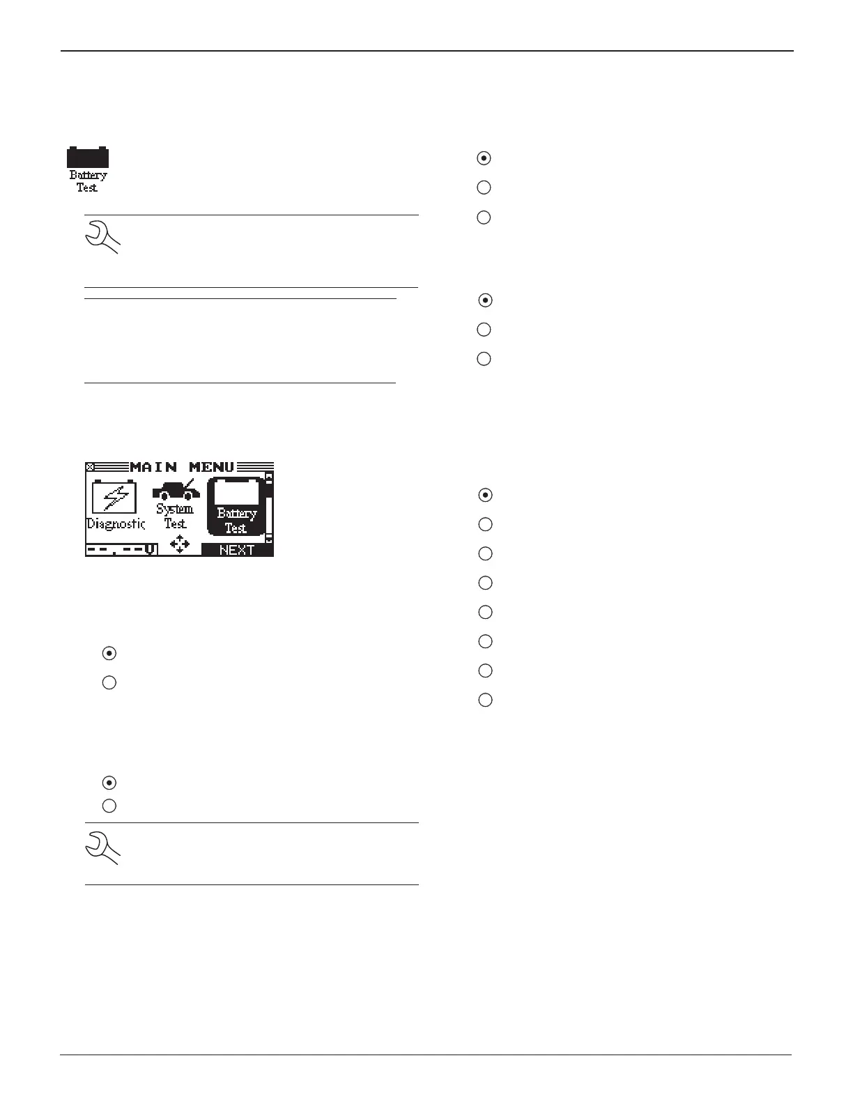 1. In the Main Menu select the Battery test icon.