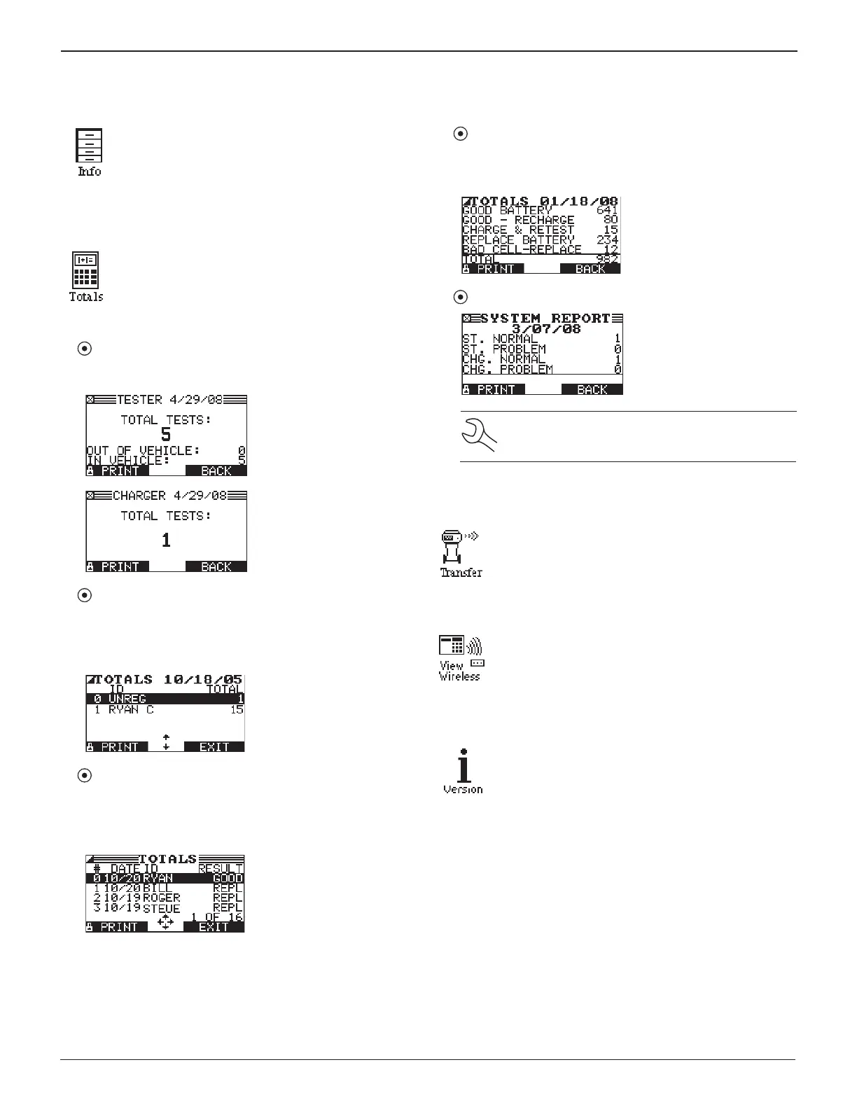 main categories: TESTER TOTALS and CHARGER
