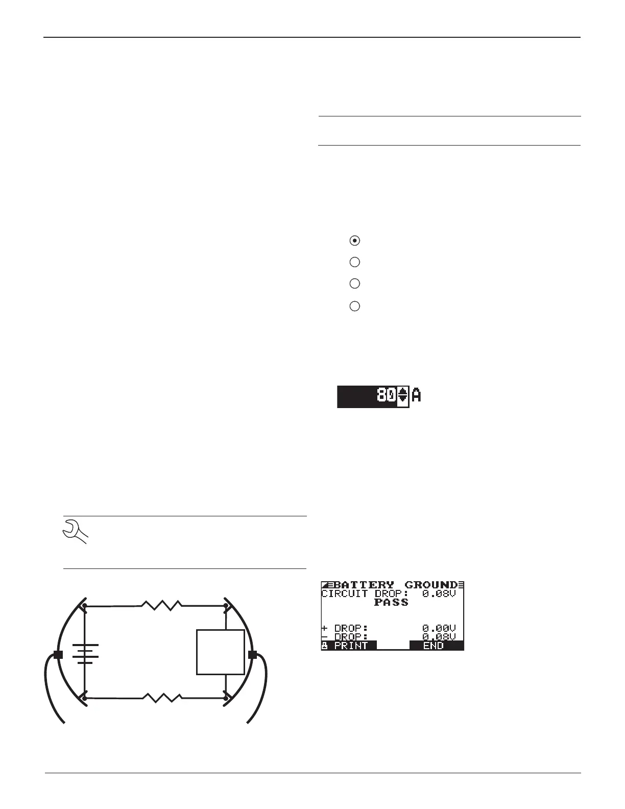 The Battery Ground Test measures the voltage drop for the