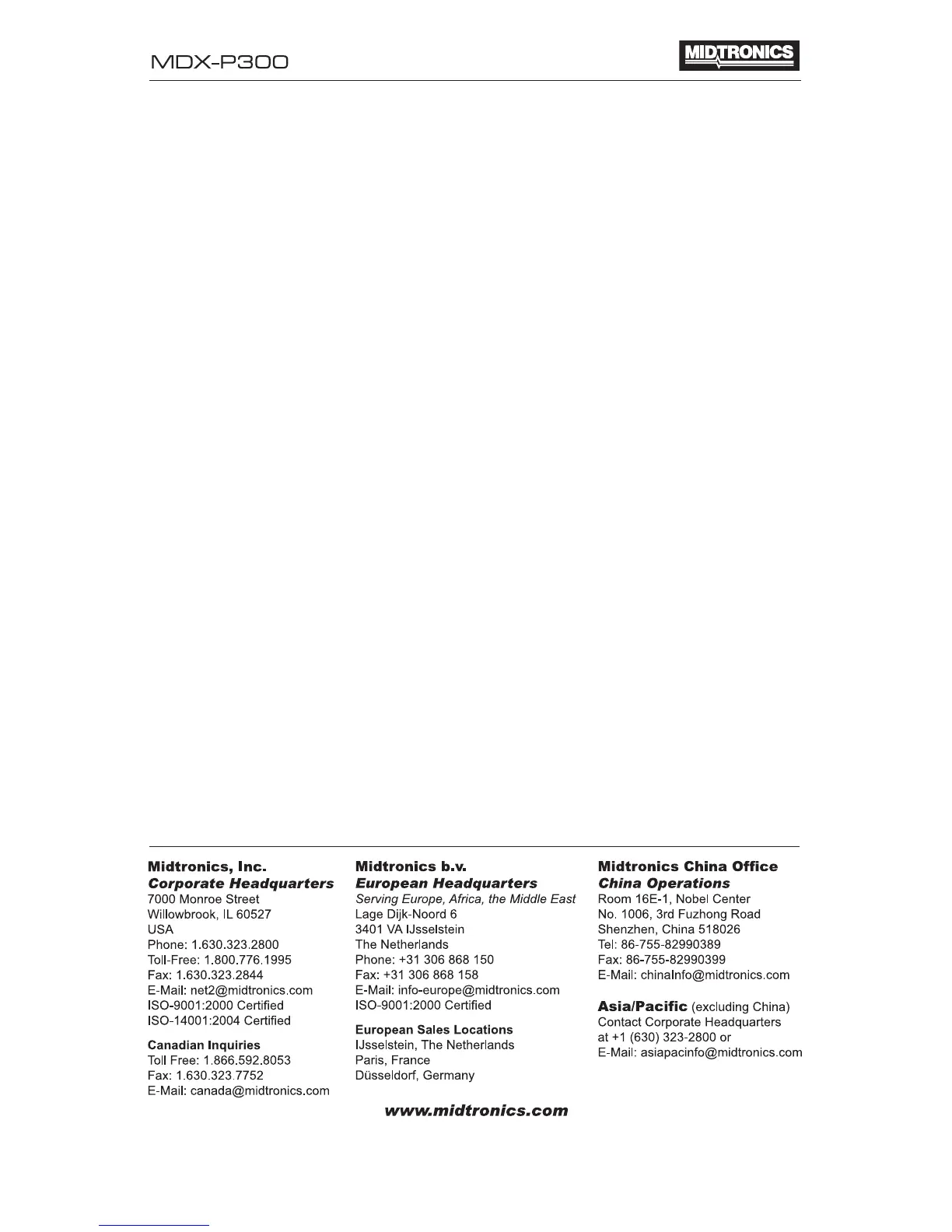 MDX-P300はMIDTRONICS,INC.によって米国で製造され、次の1つまたは複数の