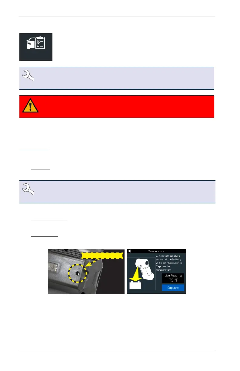 5. Temperature - when prompted, hold the tester temperature sensor 6 to 12 inches over
