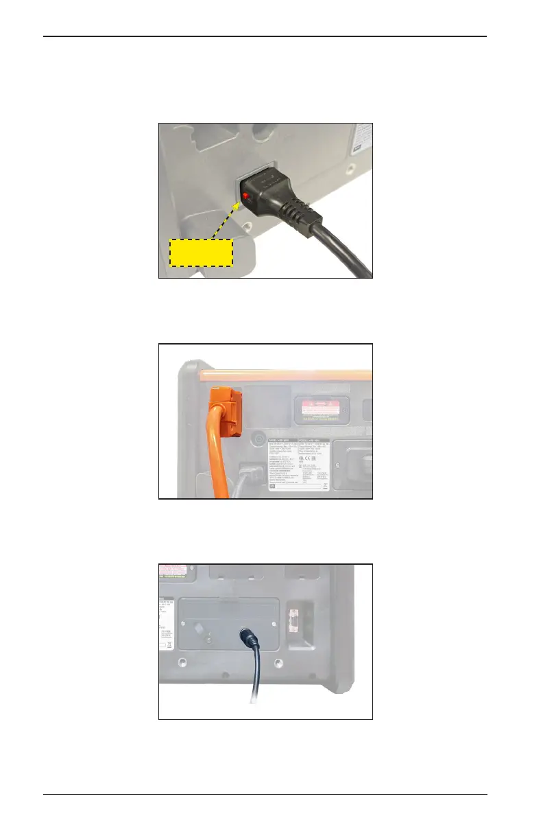 Pull back on the red tab on the side of the connector to release/remove the power cord from the