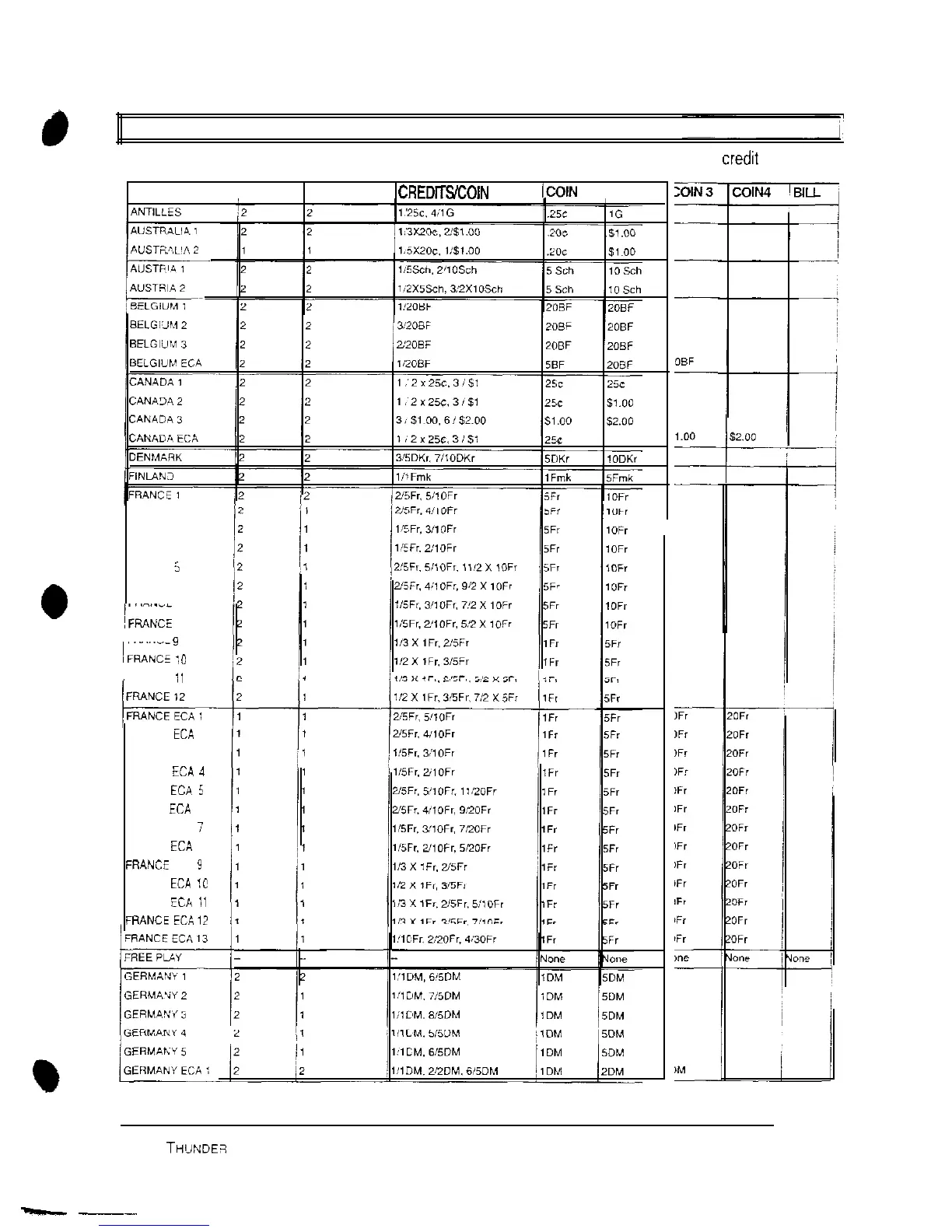 Use the Pricing Table illustrated below as a guide to select and/or verify the desired coin credit setting(s).