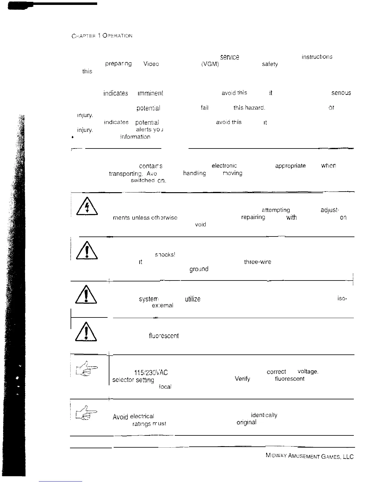 servicing or prepar’ng the Vloeo Game Machine !‘VGM) fo- play. Other saiety instructions appea- through-