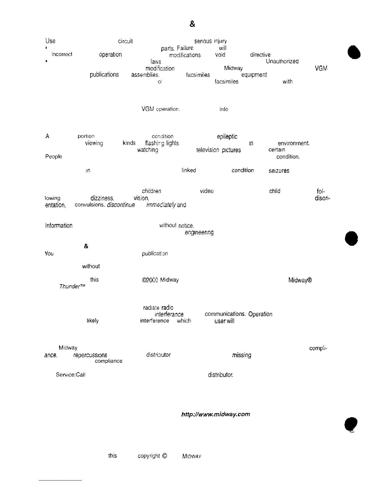 not contain an FCC complrance label, call Midway Amusement Games, LLC immediately.