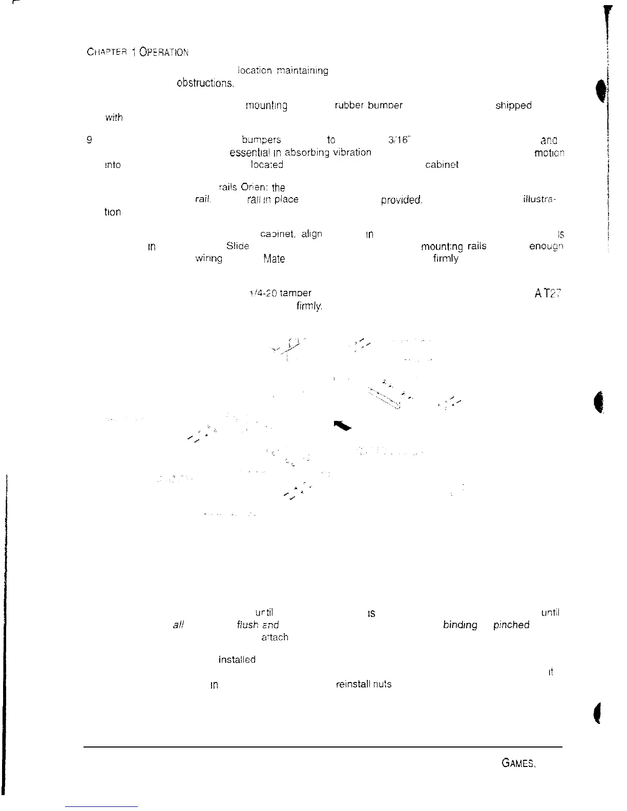 Locate the pedestal assembly mo~trng rails and rilbber bumoer spacers. which are