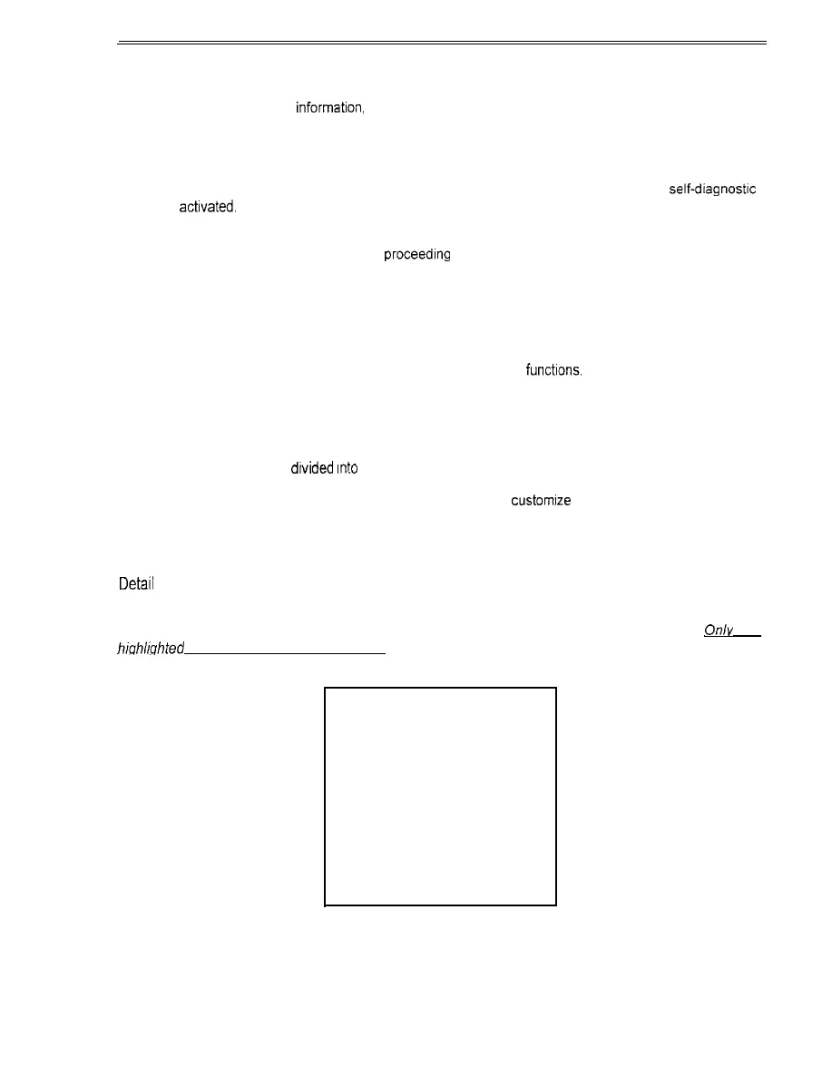 screen displays one specific group of choices. The Detail Menu presents data or runs the required test