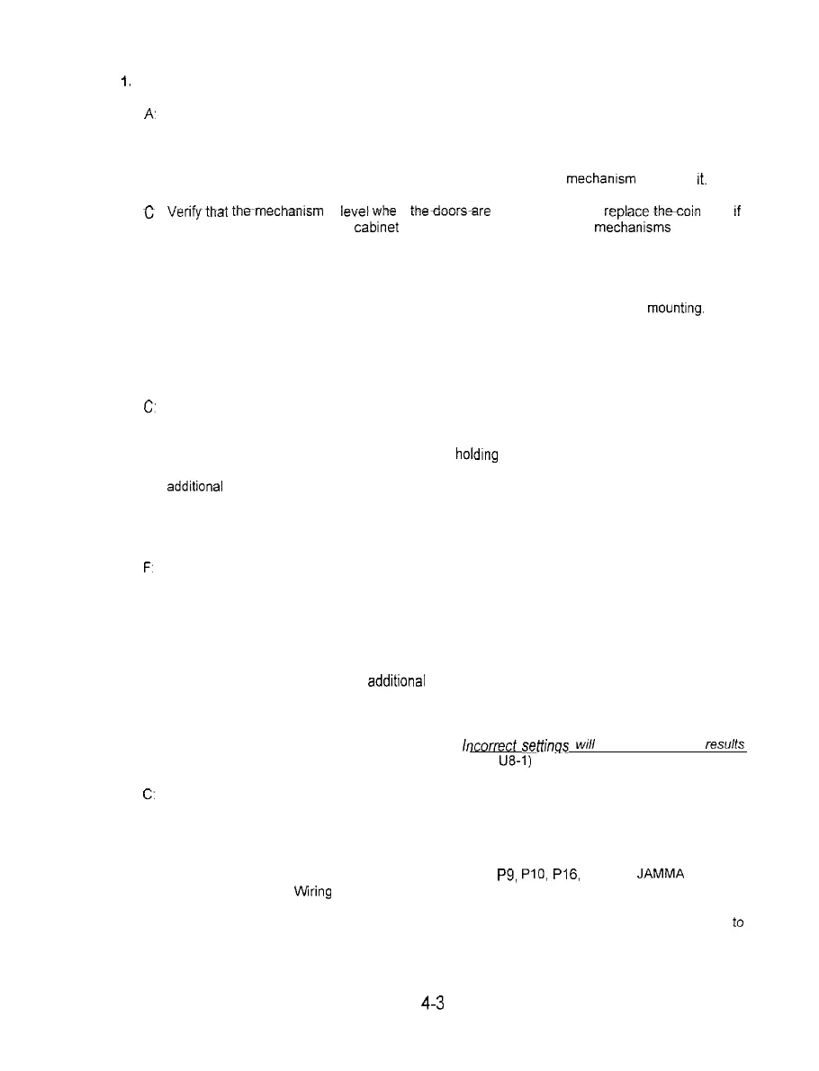 Unlock and open the coin door. Check each Acceptor by hand to ensure proper mountrng. Verify