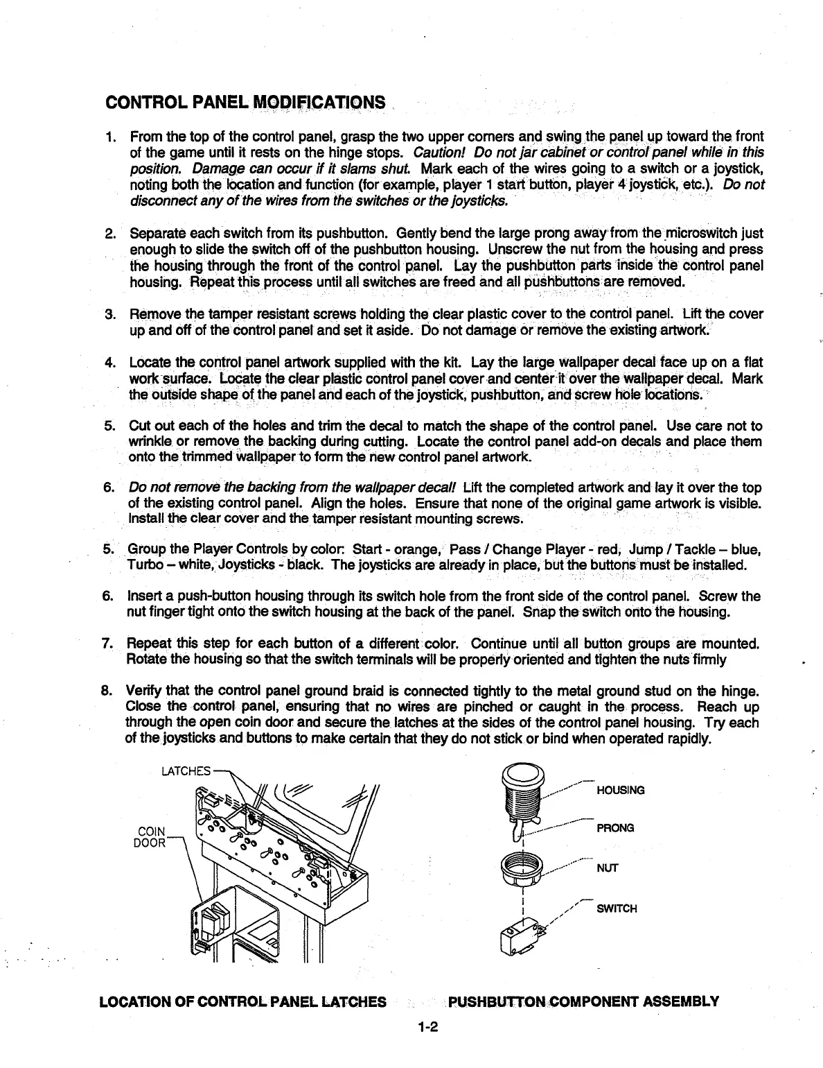 of the game until it rests on the hinge stops. Caution! Do not jar cabinet or control panel while in this