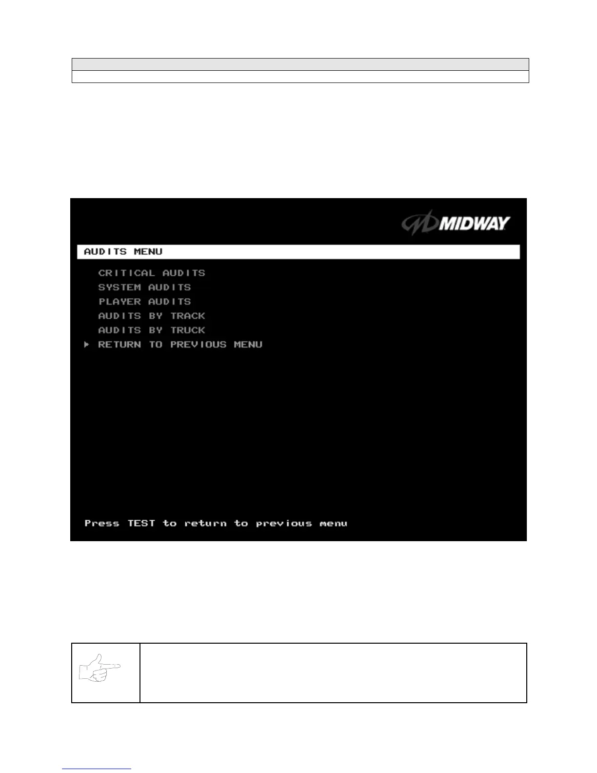 Select AUDITS MENU at the Operator Menu. The Audits Menu permits you to review game play statistics.