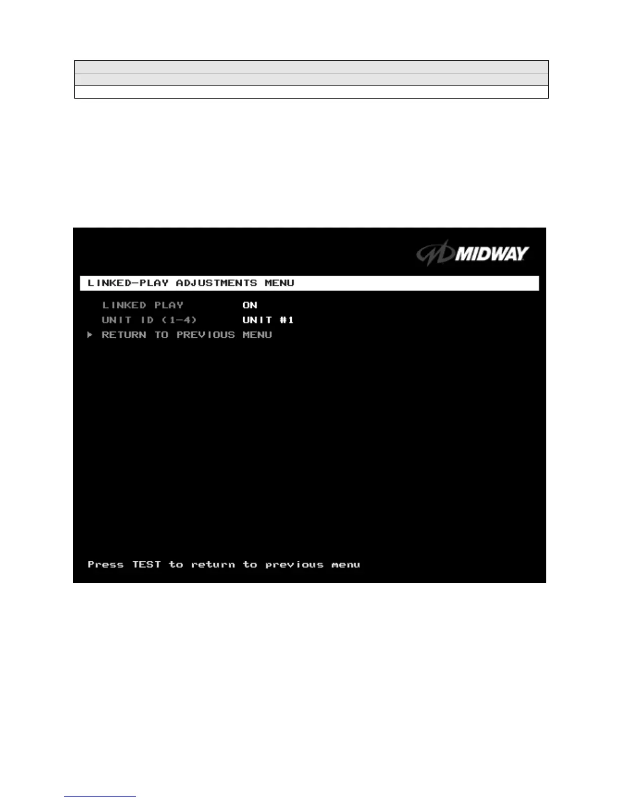 Before proceeding, bring up the Linked Play Adjustments Menu on all linked cabinets.