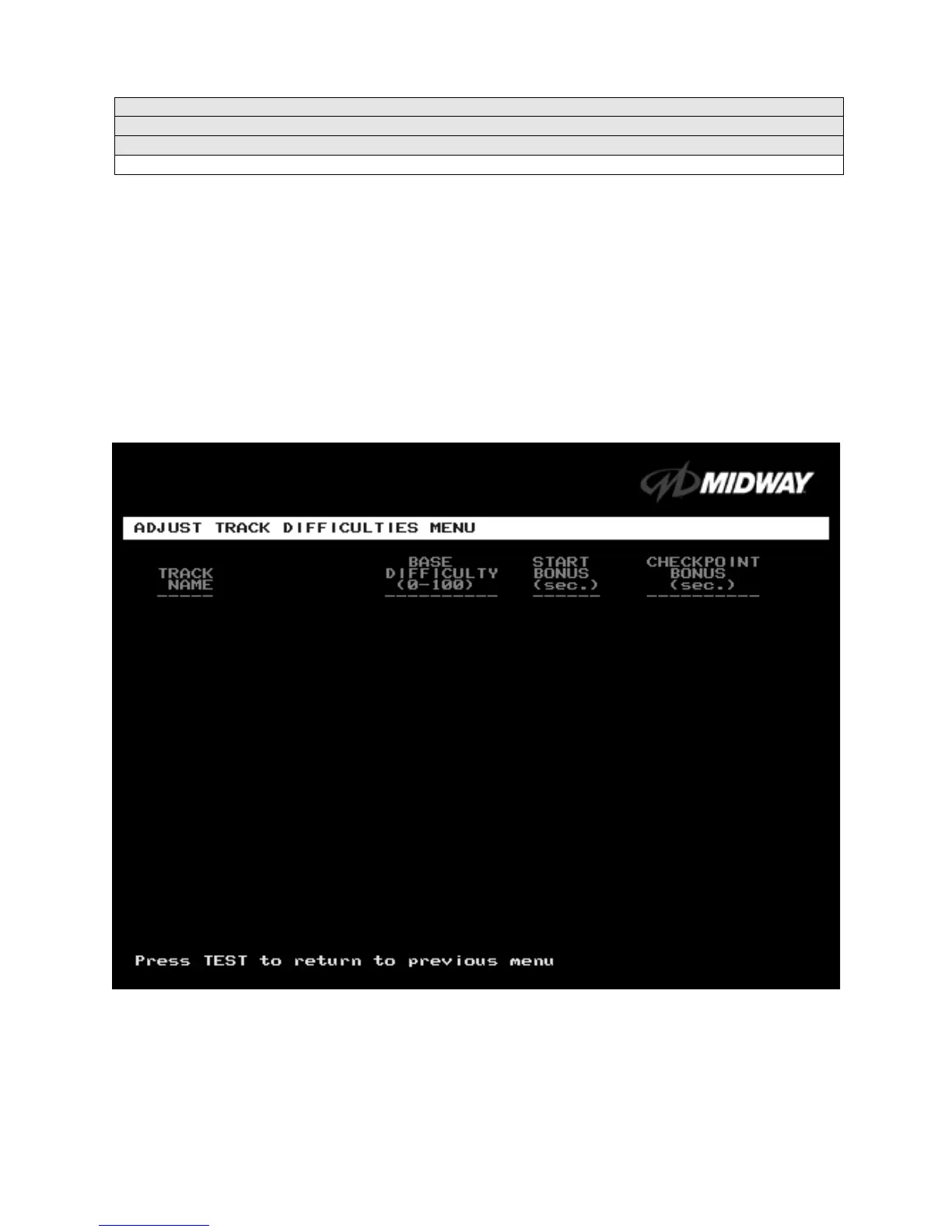 ADJUST TRACK DIFFICULTIES MENU