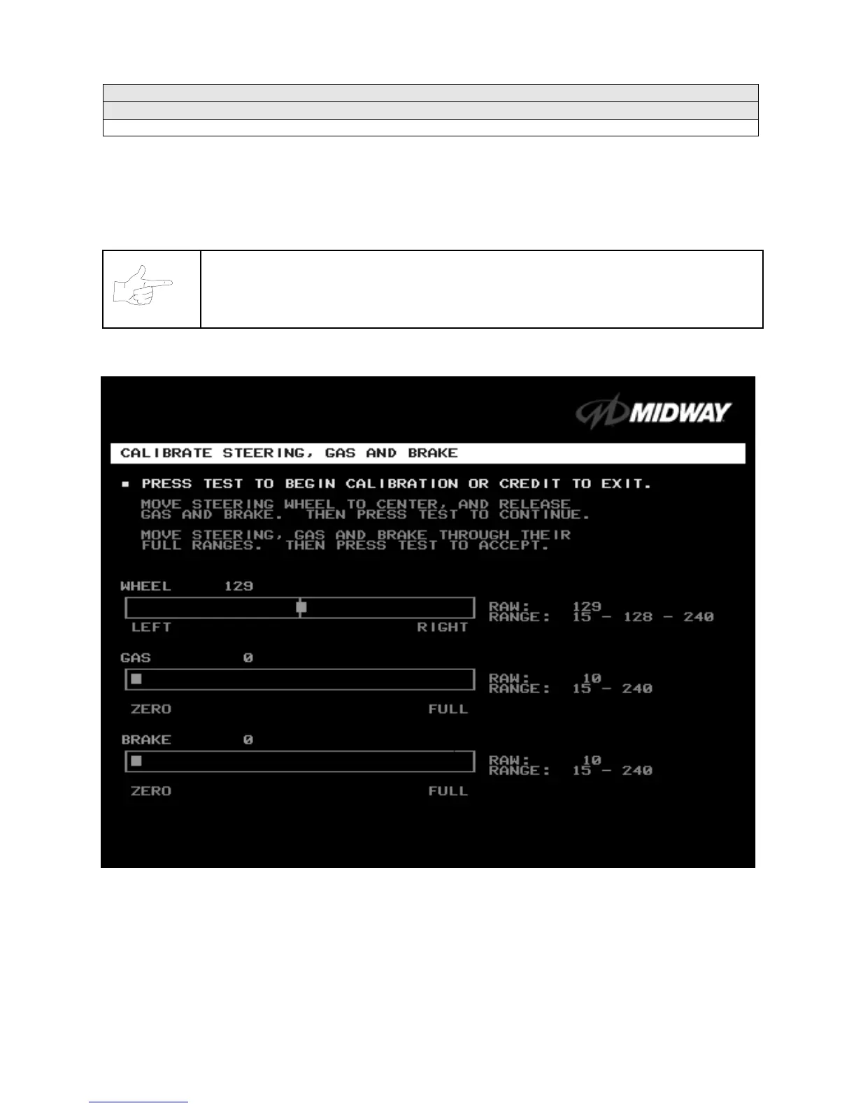 STEERING, GAS AND BRAKE CALIBRATION SCREEN