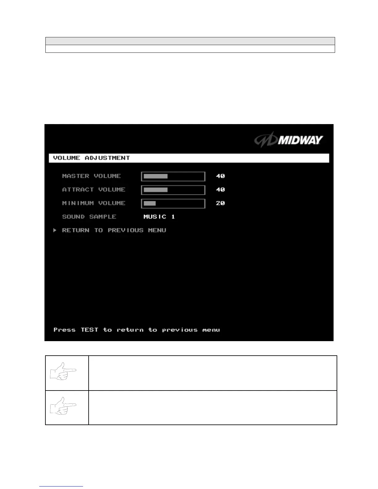 Adjustments Menu.) The Volume Adjustment Menu allows you to adjust relative sound loudness levels.