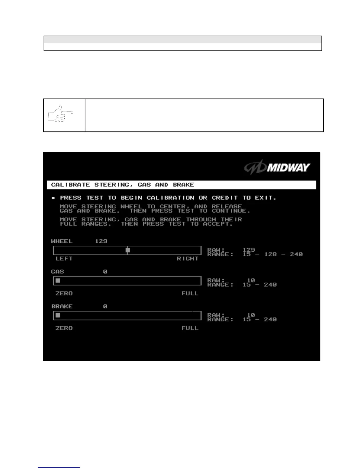 STEERING, GAS AND BRAKE CALIBRATION SCREEN